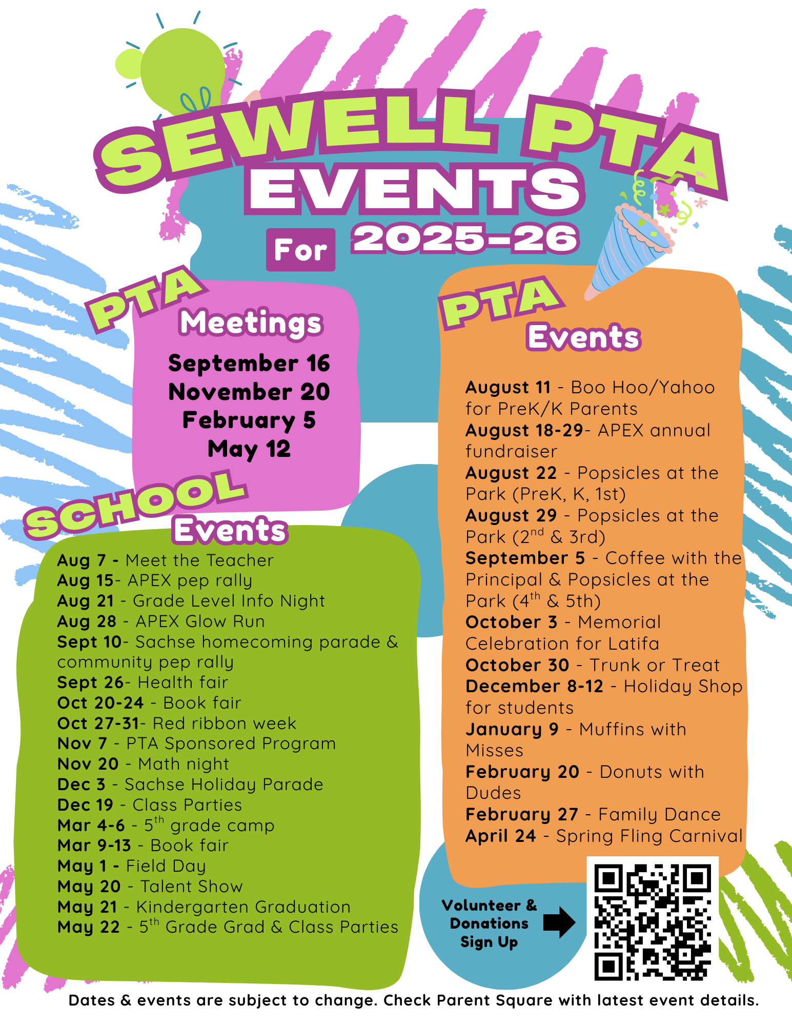 Contact us via email at sewellpta1@gmail.com